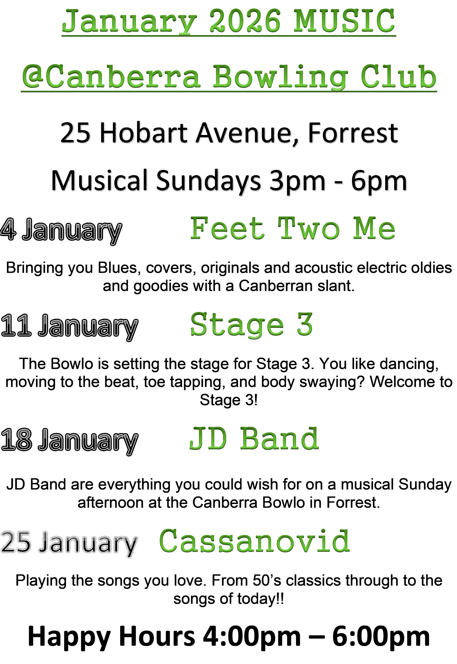 Canberra Bowling ClubBring some friends , book a table. Free entry and prizes to be won. Drinks and Snacks available at the bar