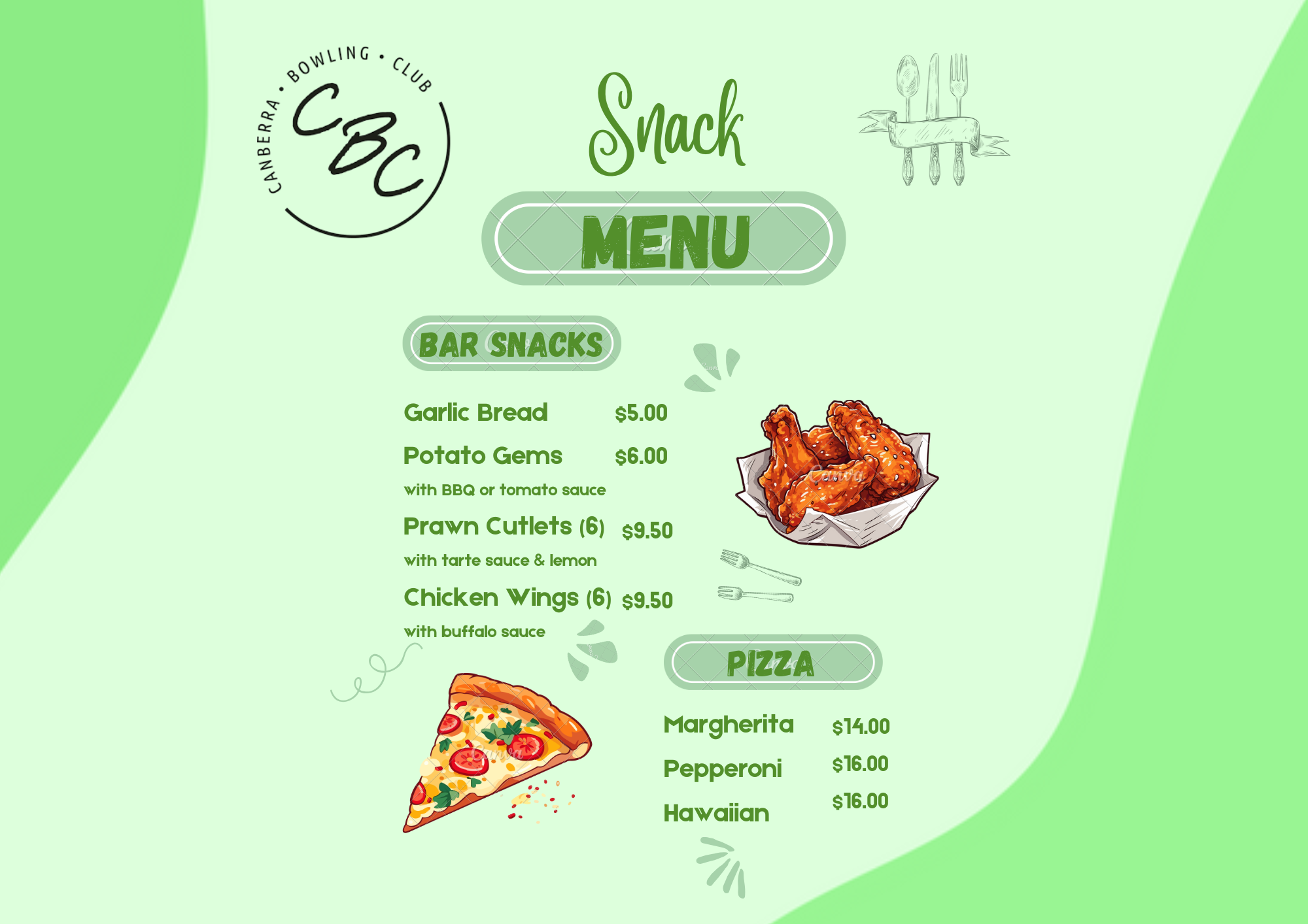Please keep in mind the Snack Menu is for small bowling groups only, not for large functions.